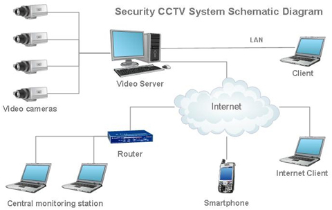 The first step is to design your Camera System to a design similar to the below schematic diagram. While in the schematic below the Cameras are connected to a Video Server, the Cameras could be connected to a Digital Video Recorder (hereafter called DVR), Network Video Recorder (hereafter called NVR) OR a Hybrid Video Recorder.